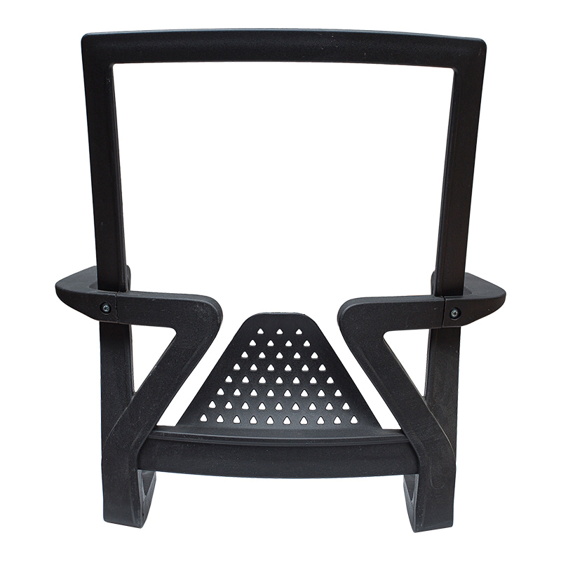 Oparcie i podłokietnik krzesła biurowego wykonane z tworzywa PP (polipropylenu), charakteryzujące się lekkością, trwałością, przystępną ceną, odpowiednie do codziennego użytku biurowego.